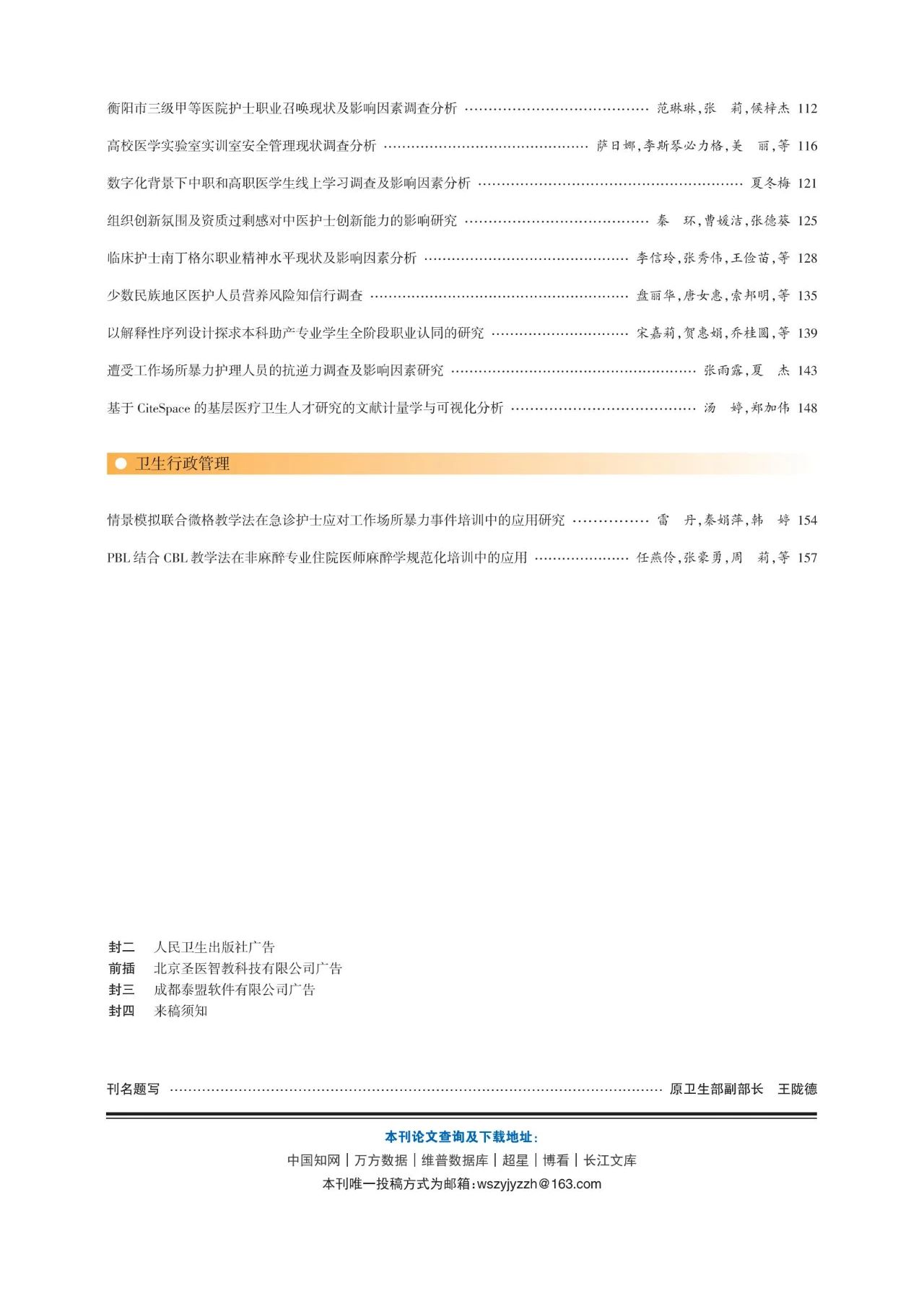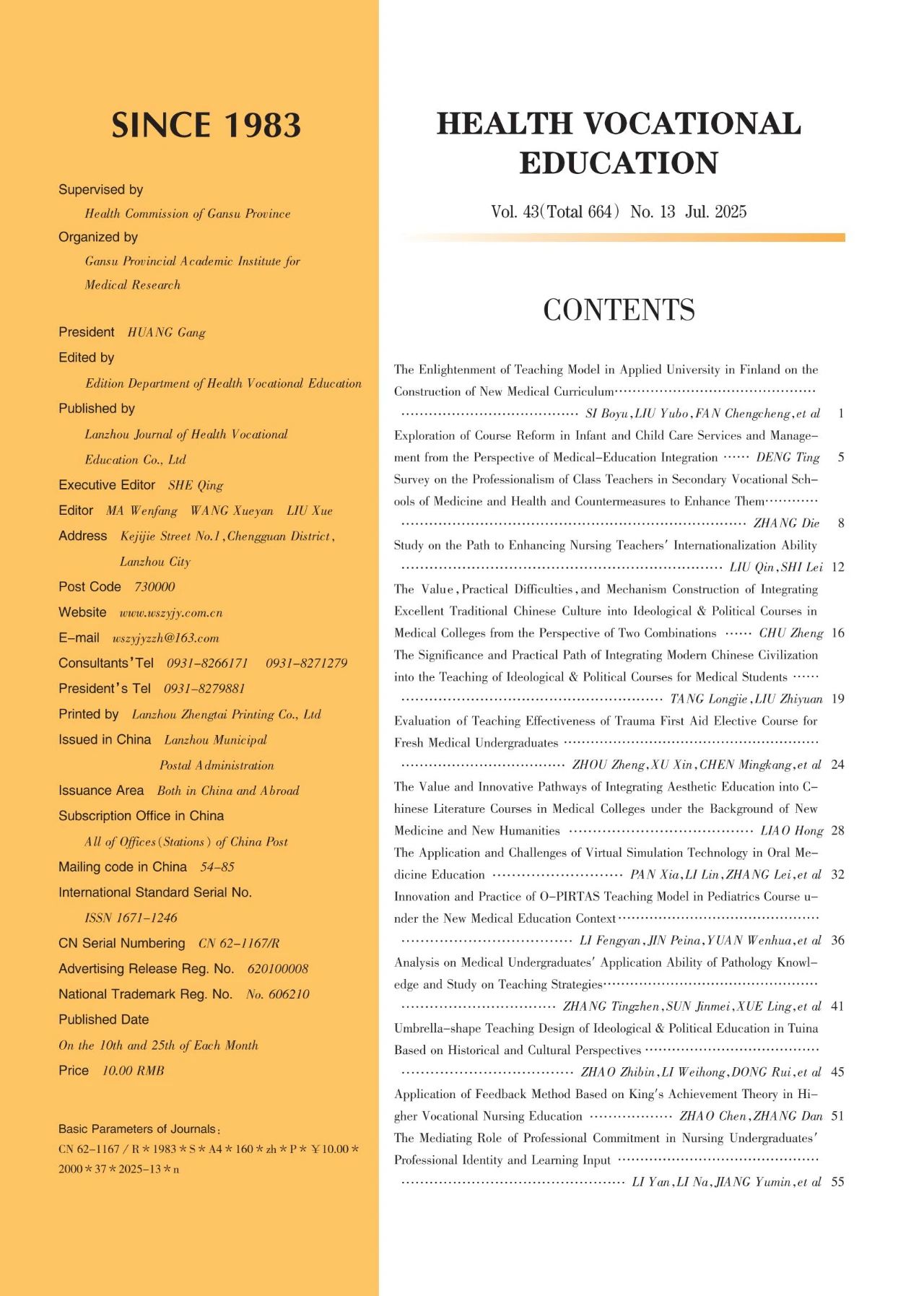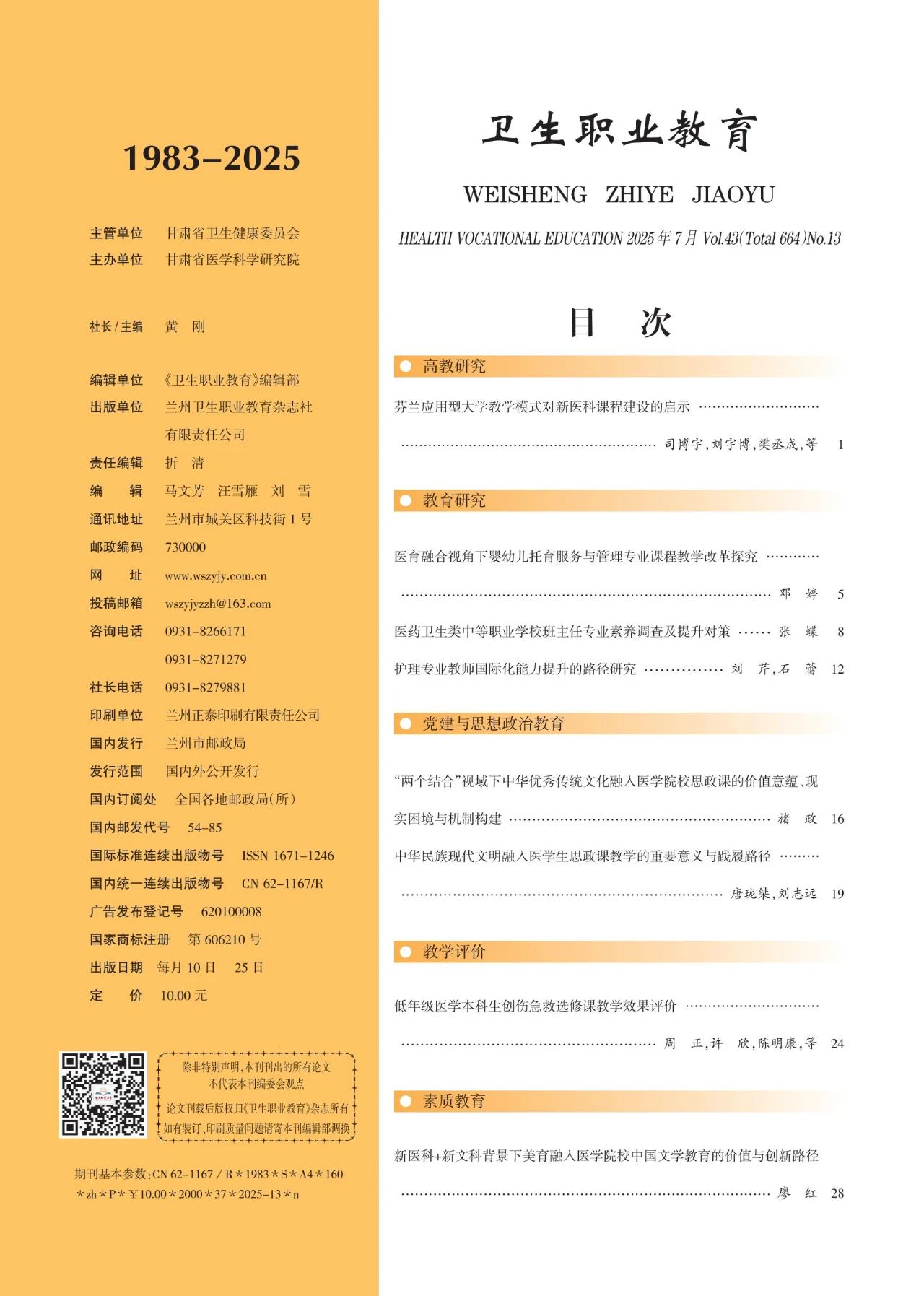 《卫生职业教育》2025年第13期封面目录