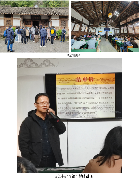 为深入贯彻落实习近平总书记关于“注重家庭、注重家教、注重家风”的重要论述,11月10日,科研四支部组织党员、职工30余人于金堂县贺麟故居学习贺氏家风家训,感受贺麟“锄经种德,耕读传家”家风的深刻内涵。本次活动由支部书记齐银主持。