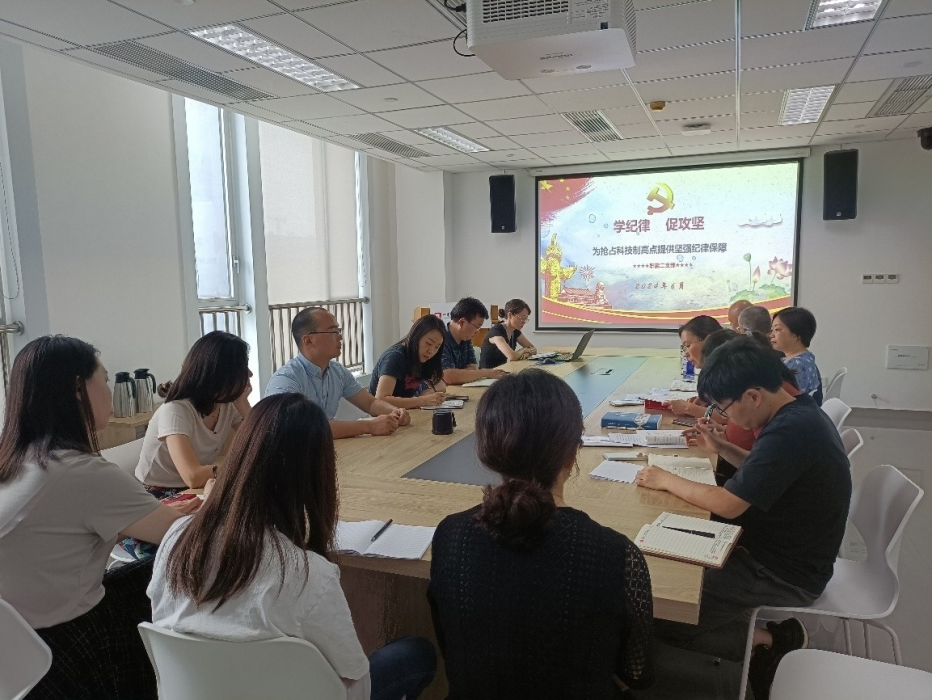 支部书记罗傲霜讲了题为《学纪律促攻坚--为抢占科技制高点提供坚强纪律保障》的党课,带领支部党员共同学习了新修订的《中国共产党纪律处分条例》,并着重对该条例修订内容和相关条文进行了细致解读。