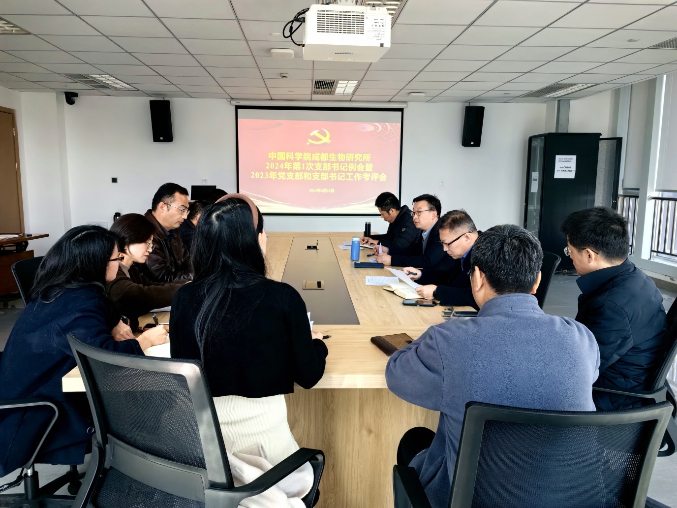 ?3月11日下午,中国科学院成都生物研究所党委召开2024年第1次支部书记例会,围绕贯彻落实习近平总书记重要指示批示精神和中国科学院2024年工作会议精神,进一步部署近期党建重点工作。党委书记、副所长刘刚君主持会议,党委委员、各在职党支部负责人参加会议。?