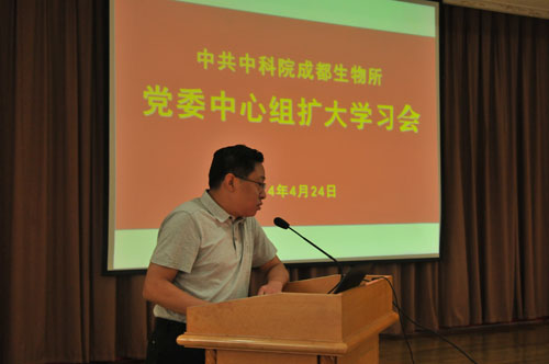 4月24日,中国科学院成都生物研究所党委召开了中心组扩大学习会,所领导、党委委员、纪委委员、副处级以上干部、支部书记、支部委员等参加了学习会。会议由党委书记、副所长叶彦主持。