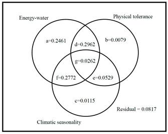 图3 尼泊尔裸子植物物种丰富度和预测因子的变异分解