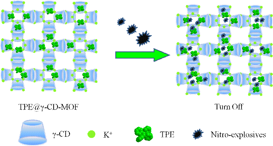 TPE@γ-CD-MOF-K检测硝基爆炸物示意图