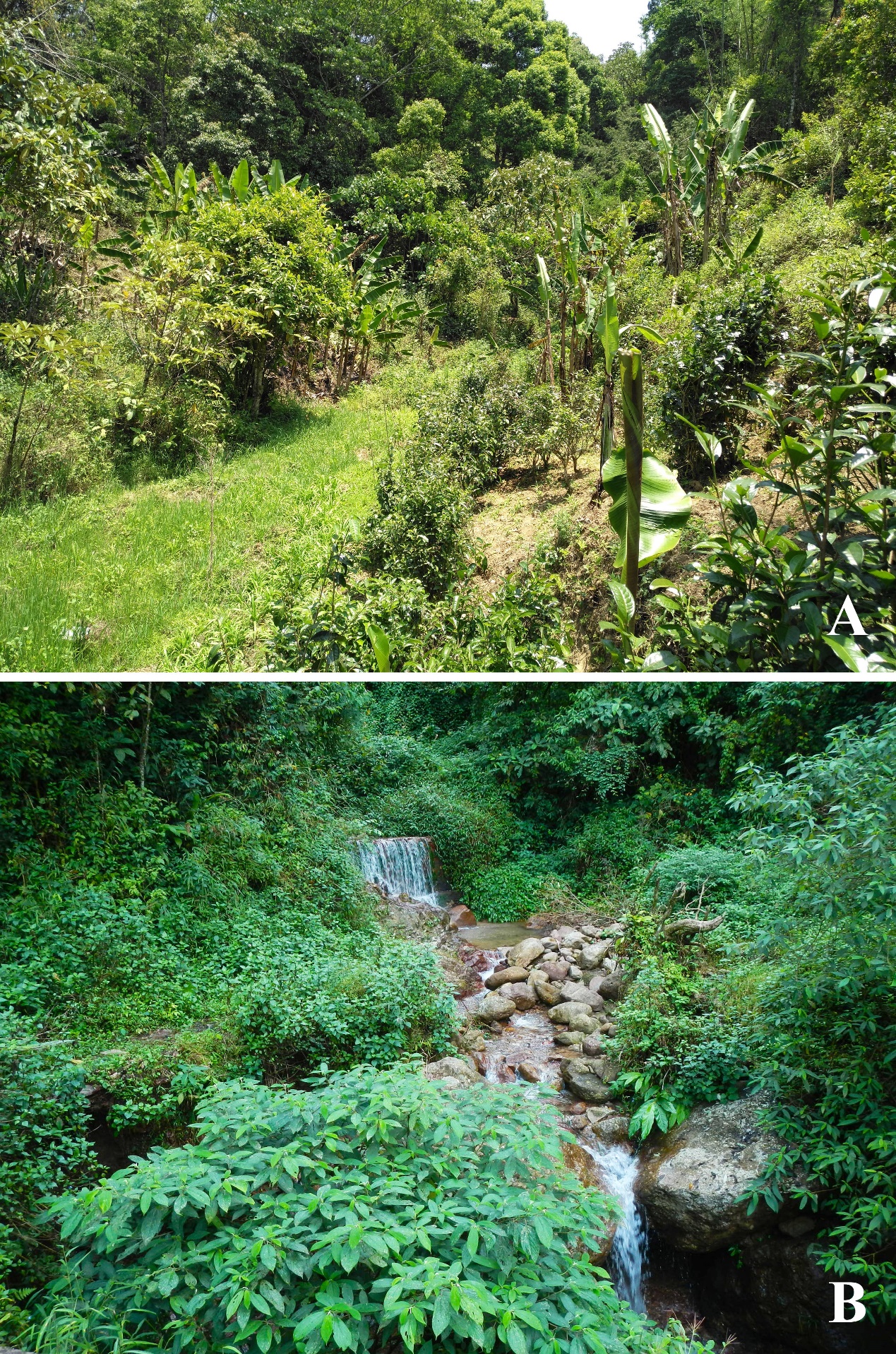 5. 勐海灌树蛙(A)和黄连山灌树蛙(B)的生境