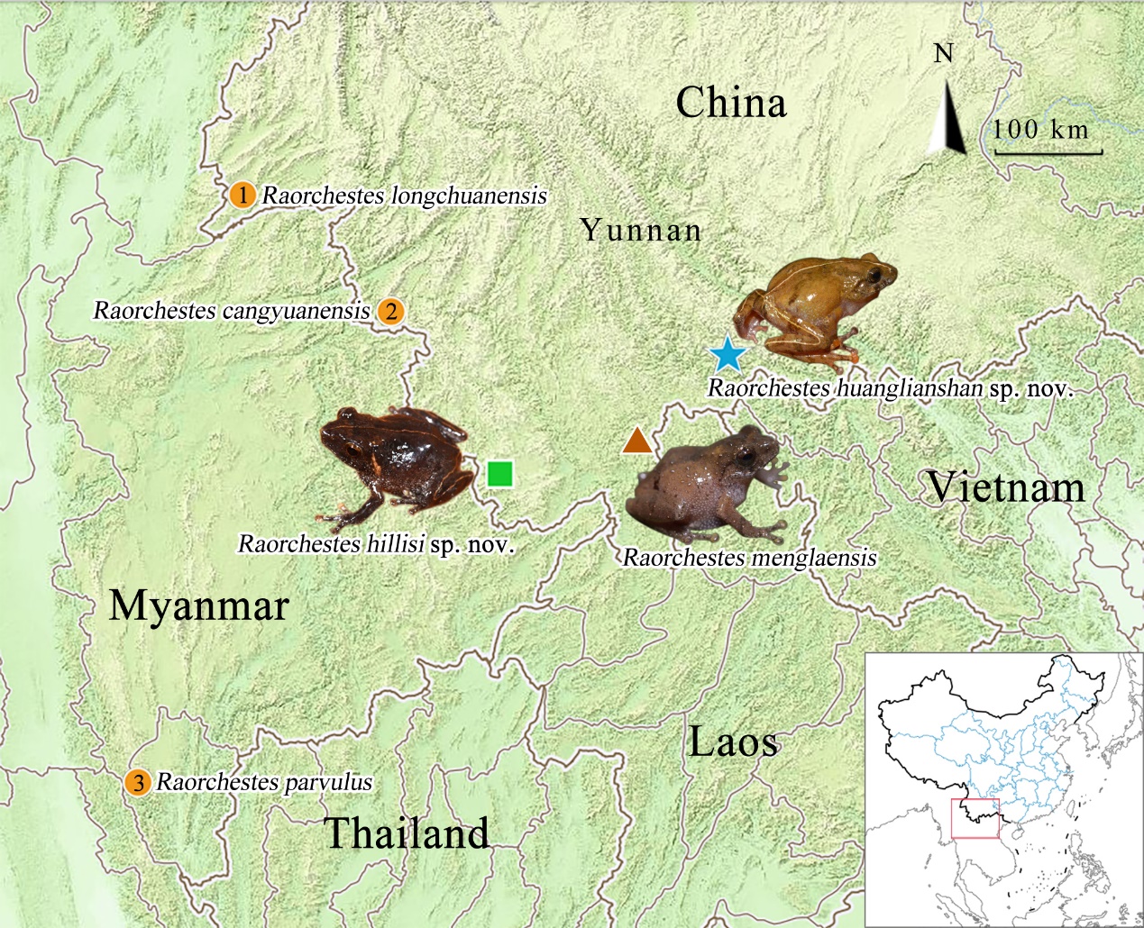 6. 勐腊灌树蛙、勐海灌树蛙、黄连山灌树蛙等物种分布图