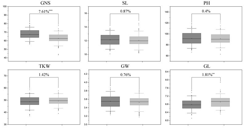 图3 QTsn/Fsn.cib-3D对产量相关性状的影响