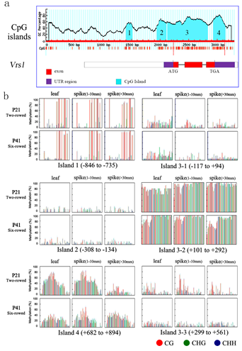 图四 Vrs1及上游2 kb CpGDNA甲基化分析