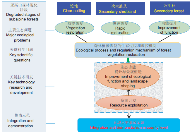 图1 项目技术路线(刘庆等.西南高山亚高山不同演替阶段退化森林生态系统的恢复重建)