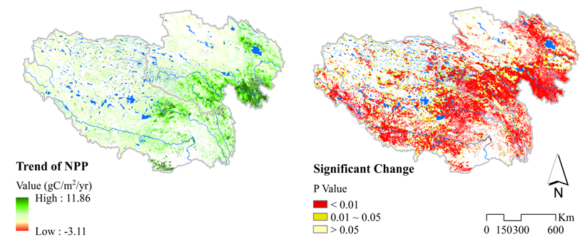 20世纪70年代青藏高原第一次科学考察以来,已过去40余年。青藏高原的生态环境发生了翻天覆地的变化。围绕青藏高原环境变化及其对植被生产力影响这一关键问题,考察研究包含生态工程在内的人类活动与气候变化对青藏高原的草地NPP的影响具有重要的现实意义和战略意义。本研究是三江源及其毗连区植被变化驱动力研究(http://www.cas.cn/syky/201910/t20191009_4719507.shtml)的延续,为青藏高原第二次科学考察提供了在全球变化背景下植被生物量调查参考图。研究证明青藏高原草地变化的主控因子正发生变化,由气候变化主导变为人类扰动主导,特别是大型生态治理和生态恢复工程主导。本研究为 世界屋脊地球第三极地区的生态安全战略和植被生产力管理提供参考 。相关研究成果得到国际同行认可,并获Journal of Arid Land十大优秀论文奖。