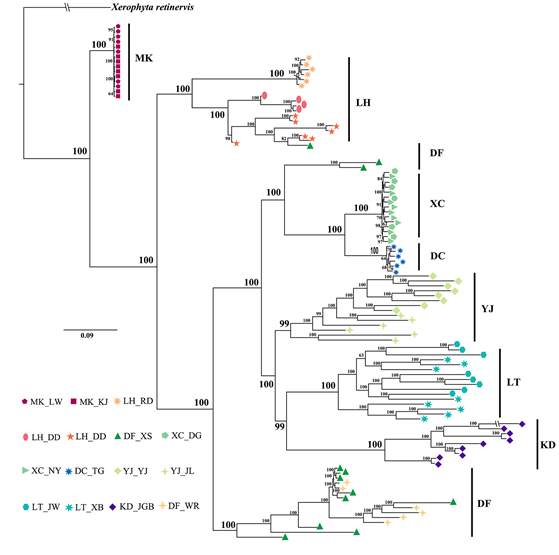图4. 基于全基因组重测序的SNPs构建的最大似然树。