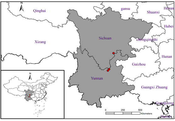 3 禄劝杭子梢Campylotropis luquanensis的分布图(红圈)