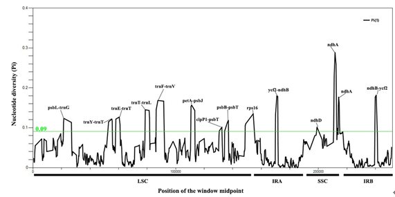 图3. 七个Cypripedium叶绿体基因组的核苷酸差异分析。