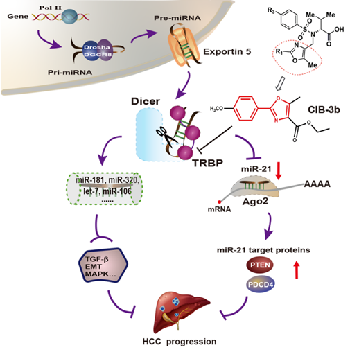 成都生物所发现新型化学小分子药物靶向TRBP-Dicer蛋白相互作用调节microRNA生物合成治疗肝癌的研究成果
