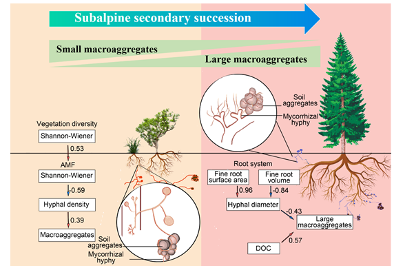 成都生物所揭示了亚高山森林次生演替过程中菌根真菌对土壤团聚体形成的贡献