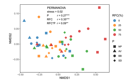 图1 基于Bray-Curtis距离的微生物群落非度量多维尺度分析