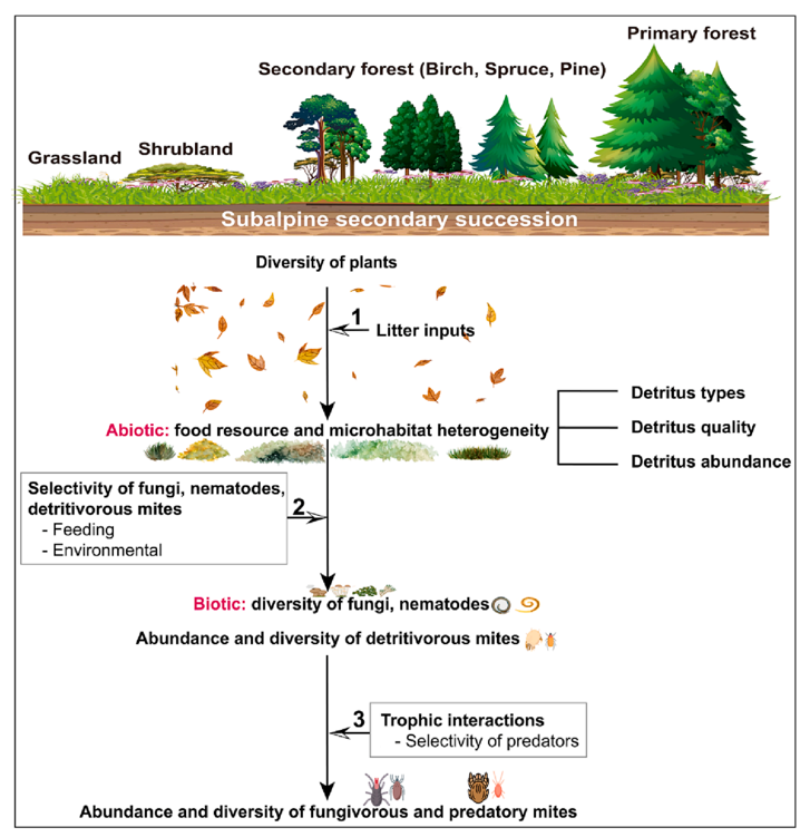 成都生物所揭示亚高山森林演替中土壤螨多样性及功能类群变化与食物资源相关