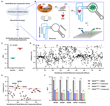 图6. 基于生物传感器的抗真菌药物筛选及其作用模式总结