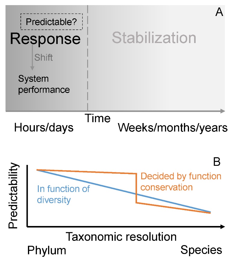 该研究工作主要关注微生物研究领域的重点、难点问题,即微生物群落结构及其变化的可预测性。特别是在微生物主导的生态系统中,比如厌氧发酵系统,微生物对生态系统的功能和服务起到至关重要的作用。那么生态系统的功能是否可预测,系统中的微生物群落变化是否可预测,及二者是什么关系?