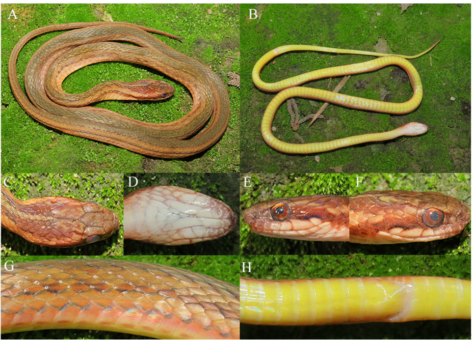 东亚腹链蛇属Hebius为一类半水栖的中小型蛇类,广泛分布于东亚、东南亚及南亚地区。该属多样性丰富,已知50种。近年来,陆续有盐边腹链蛇H. yanbianensis、桑植腹链蛇H. sangzhiensis、维西腹链蛇H. weixiensis、右江腹链蛇H. youjiangensis等新种被发现,这表明对东亚腹链蛇这一属的物种多样性调查研究尚需持续推进。