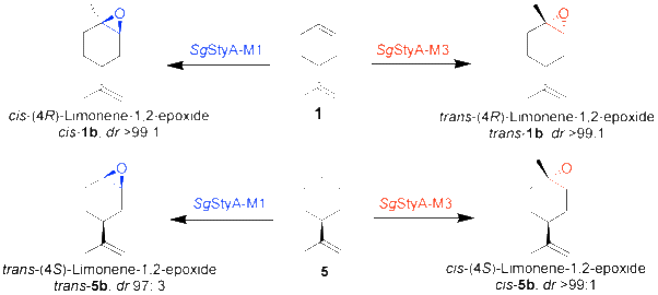 成都生物所占国强团队实现苯乙烯单加氧酶催化萜烯类化合物高立体选择性环氧化
