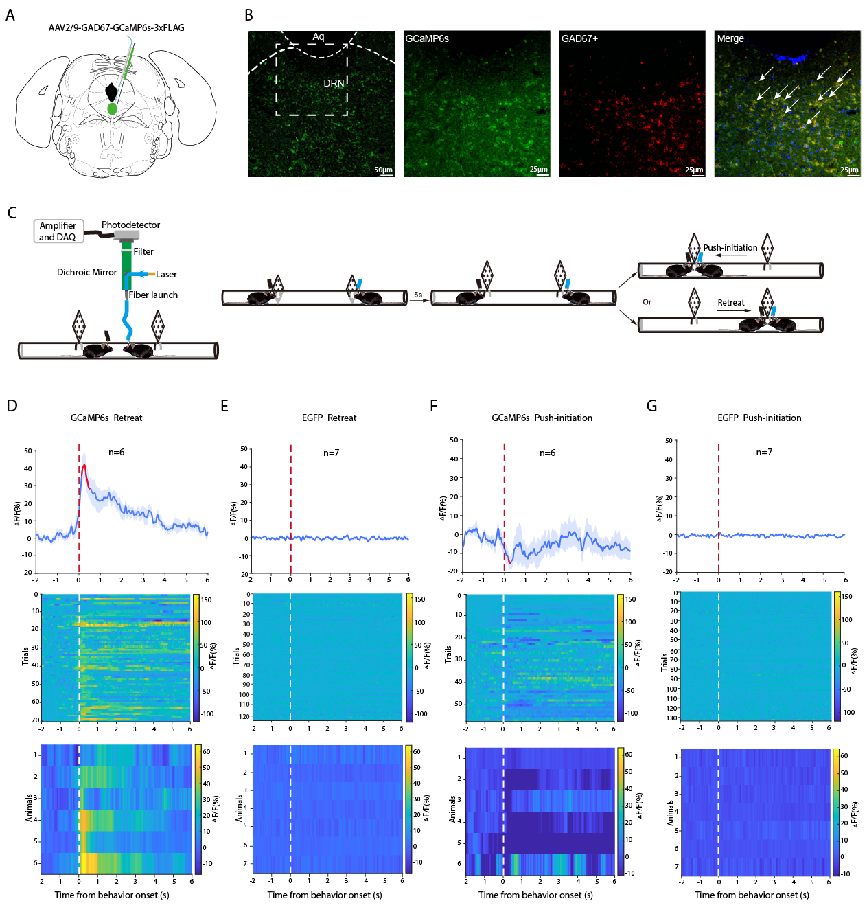 图1. DRN GABA能神经元在钻管测试中表现出双相活动模式