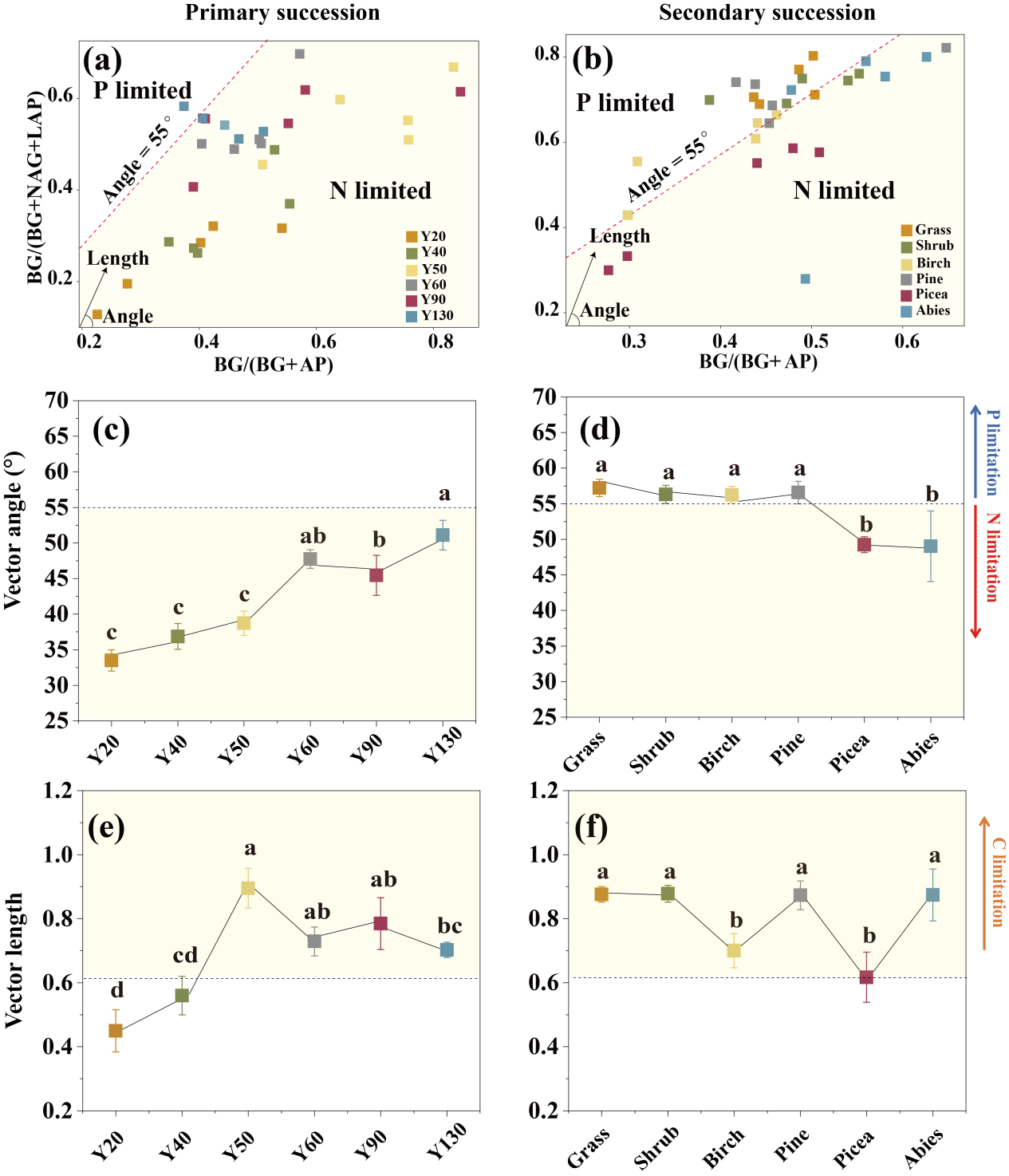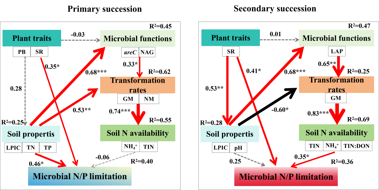 图3.原生和次生演替序列土壤微生物氮限制调控机制