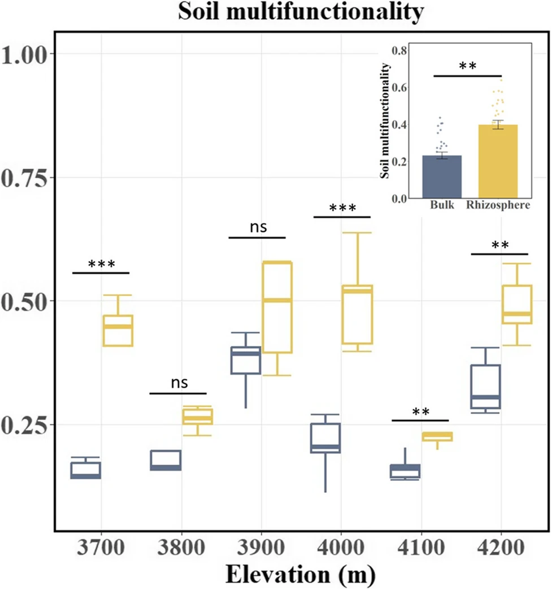 图1:根际、非根际土壤多功能性沿海拔变化差异