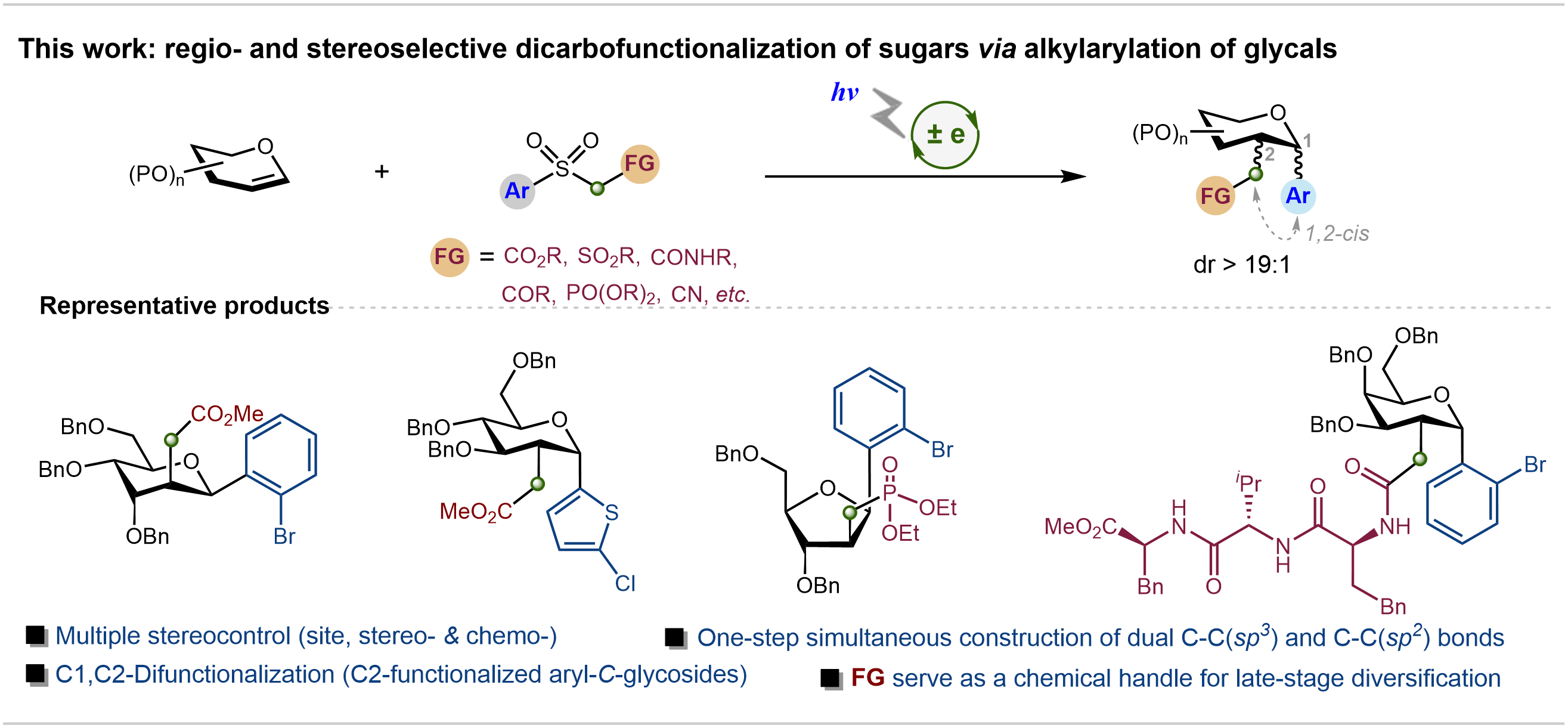 成都生物所马小锋团队通过光氧化还原催化攻克糖环双位点选择性C-烷芳基化难题,为糖基药物研发开辟新路径