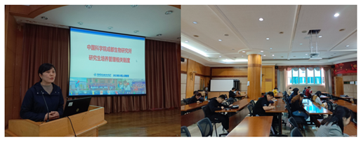 研究生部赵爱华主任介绍了研究生管理相关制度,解读了一些重要文件。会后。对新入所学生进行了新生心理健康普测。