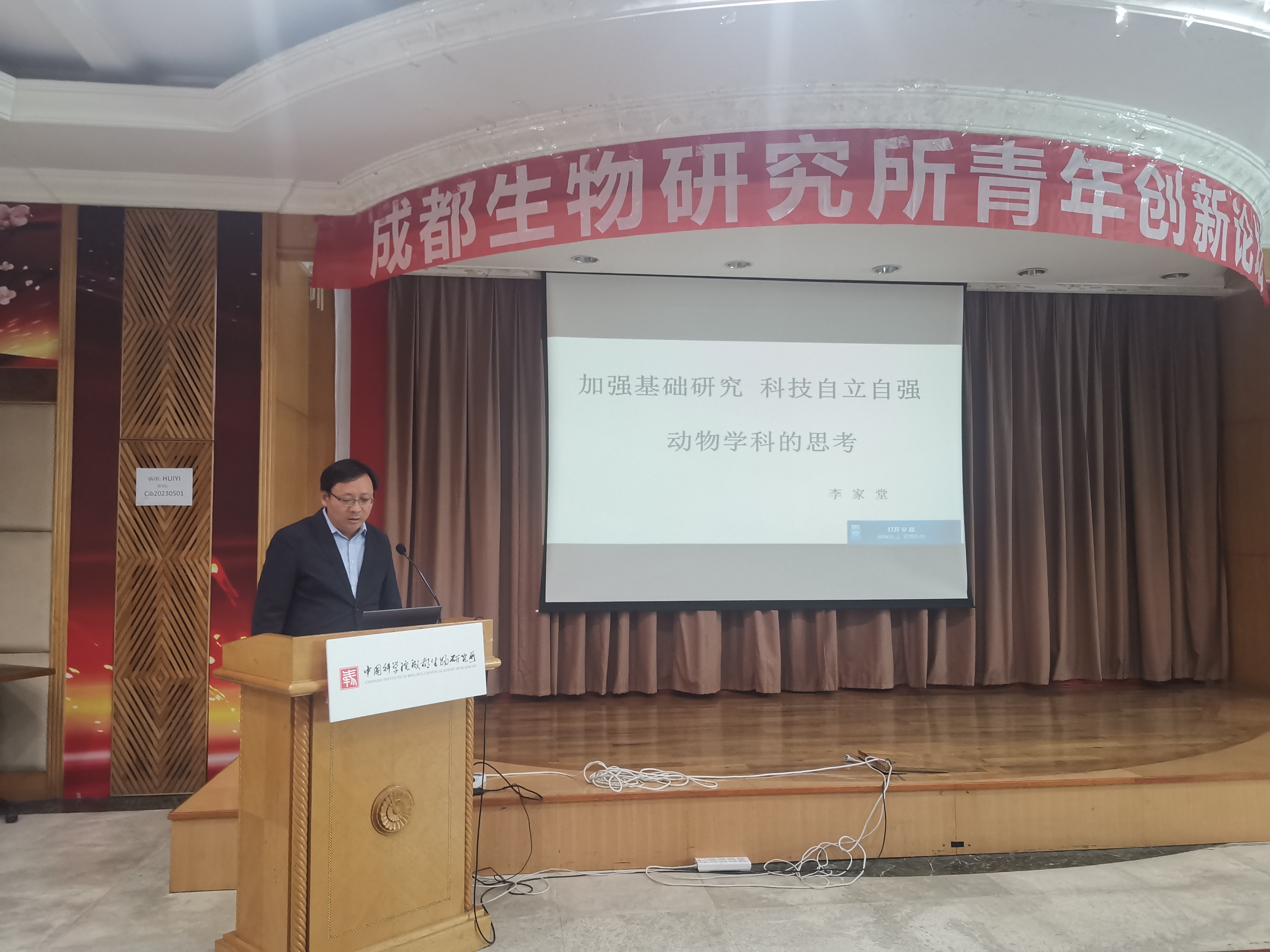 结合会议主题,副所长李家堂作重点发言。他重点讲述了在动物学科方面,如何加强基础研究,推进科技自立自强。他谈到,面对动物学中分类学人才逐步减少的现状,重点是解决卡脖子问题,探索野生动物的模式化,开发爬行动物作为模式动物。