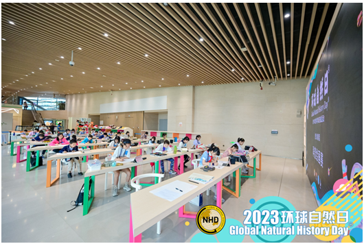 “环球自然日 青少年自然科学知识挑战活动”是由环球健康与教育基金会(Behring Global Educational Foundation)发起的,旨在激发中、小学生对自然科学的兴趣,提高其研究、分析和交往能力的公益性科普教育活动。参赛选手们根据年度活动主题展开研究,例如,科普绘画赛选手需要以场馆的展示资源为对象,在指定场地和时间内,限定规格的纸张上,以绘图加科普性文字描述的形式进行艺术创作;展览赛的选手需要在限定空间范围的结构性装置上,将选题研究的分析过程和解答内容以文本、影像、标签、标示、制作物等方式进行可视化表现和展示,完成评审答辩;英文故事播讲赛的选手需要通过对素材库提供的英文科学故事进行理解、熟记,在限定的时间内组织语言完成脱稿讲述,并回答评委的提问。