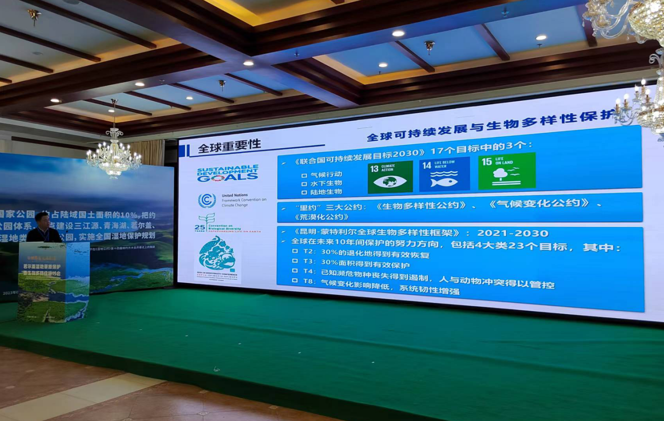 为深入推动山水林田湖草沙一体化保护和系统治理,积极筹建若尔盖国家湿地公园建设,引导社会公众共同参与若尔盖湿地草原暨生物多样性?;ぃ?月28日,“2023年若尔盖湿地草原保护暨生物多样性研讨会”在阿坝州若尔盖县唐克镇举行。来自联合国开发计划署、全球环境中心、中国湿地?;ば?、中国科学院成都生物研究所、中国科学院西北生态环境资源研究院、中国科学院若尔盖湿地生态研究站、四川省林业科学研究院、四川省生态环境科学研究院等国内外相关行业机构的专家学者,以及中央电视台、四川电视台、政府部门和保护区管理部门代表参会研讨。