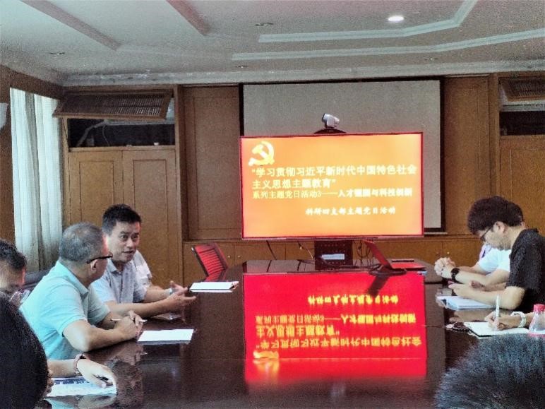 7月19日下午,科研四支部开展了科技创新与人才强国主题党日。活动由支部书记齐银同志主持,并邀请党委副书记、纪委书记蔡长江同志、党委办(纪监审室)副主任吴聪同志、科技处副处长汤琴同志、人事教育处曹燕同志出席。
