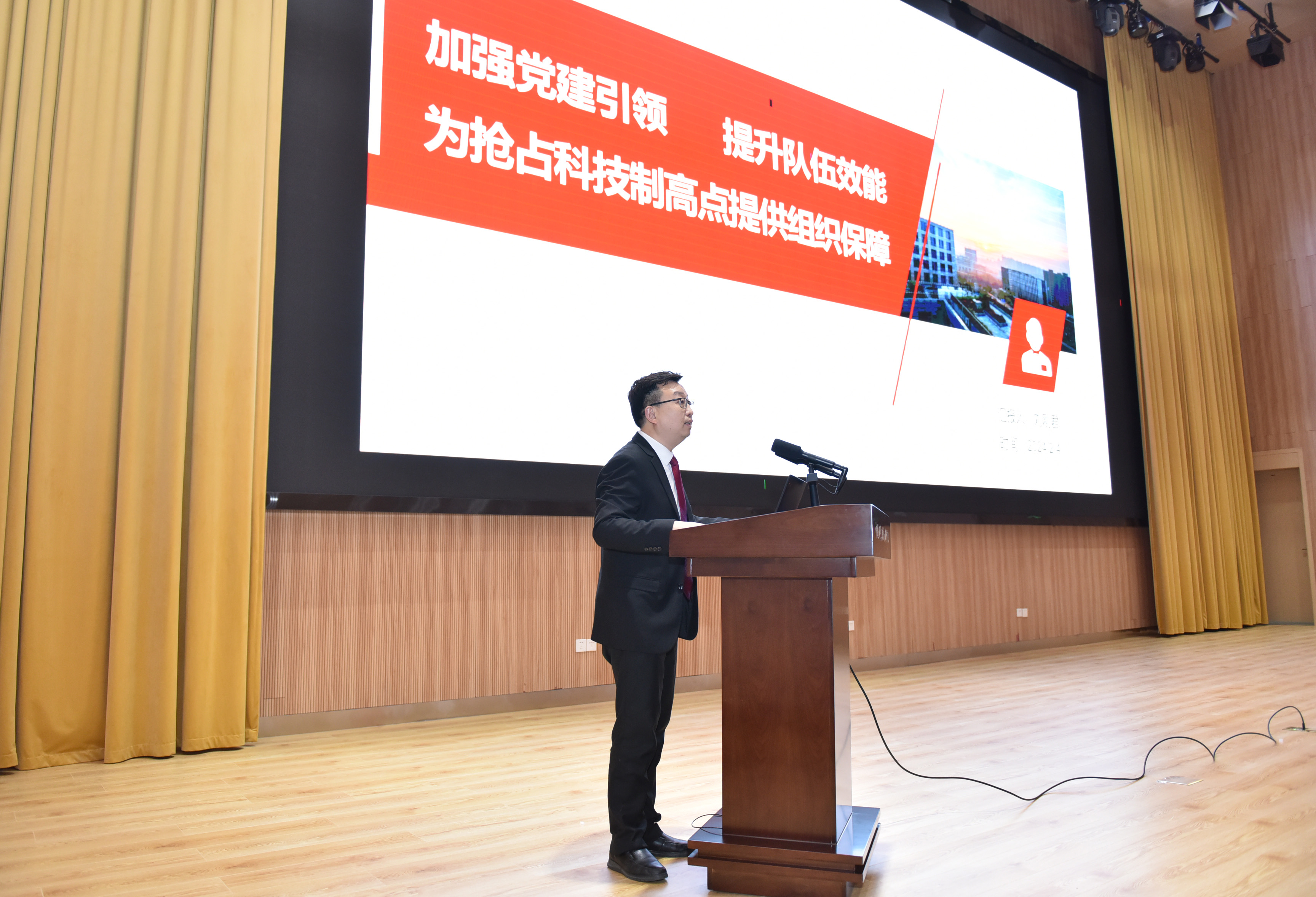 党委书记、副所长刘刚君以《加强党建引领,提升队伍效能,为抢占科技制高点提供组织保障》为题作专题报告。全面梳理了党建人才工作现状,分析了存在的主要问题,并从“树立、重塑、提升、优化、加强”五个方面,阐述了下一步党建人才工作如何围绕抢占科技制高点重点发力。