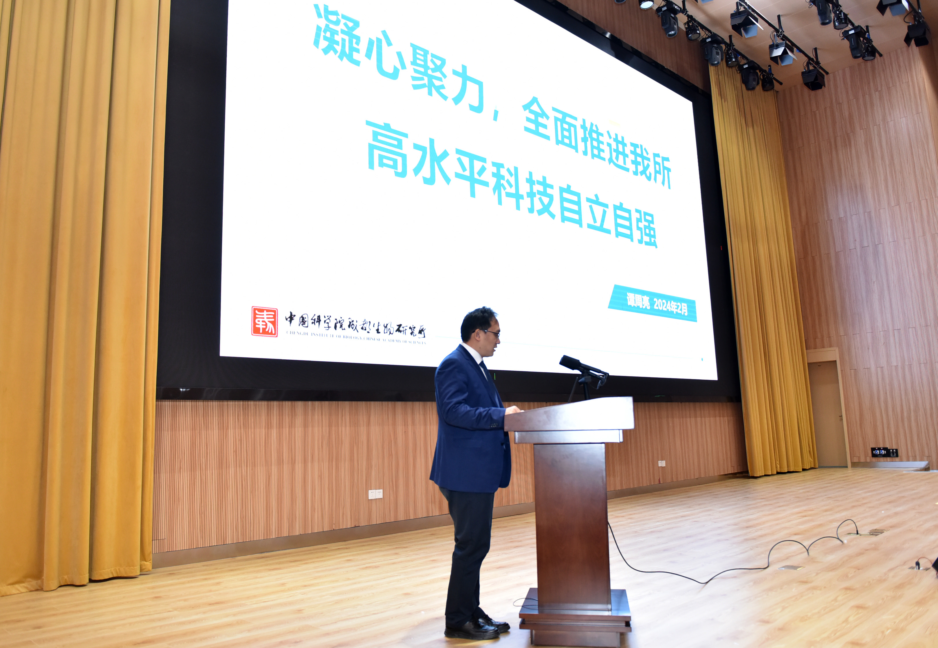 副所长(主持工作)李家堂代表所领导班子作研究所2023年工作报告。报告全面总结了研究所一年来围绕“强基础、抓攻关、聚人才、促改革”的重点任务落实情况,传递了以“奋斗者为本”的发展思想,阐述了以抢占科技制高点为指引,如何从“学科重塑”“队伍重塑”入手激发研究所创新活力的发展思路。他希望全所职工进一步提高政治站位,勇挑重担,既要“走出去”开拓视野,也要“请进来”共谋发展,为研究所创新发展贡献力量。
