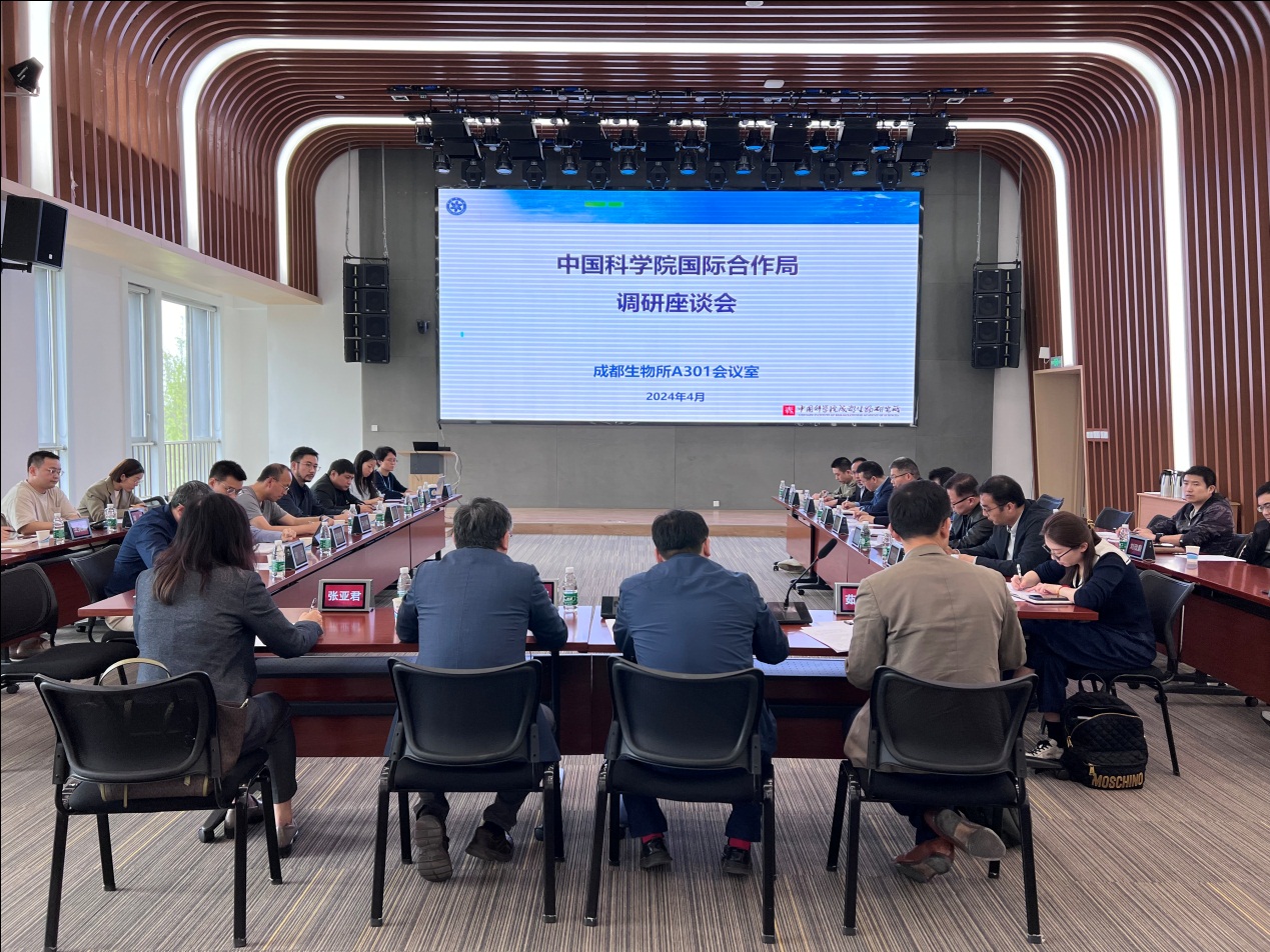 4月10日下午,中国科学院国际合作局副局长王振宇一行赴中国科学院成都生物研究所调研,与青年科学家、科技管理人员等20余人就国际合作工作进行交流。成都生物研究所副所长谭周亮主持会议。