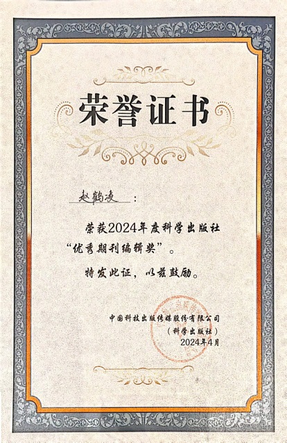 成都生物所期刊工作获2024年科学出版社期刊出版年会表彰