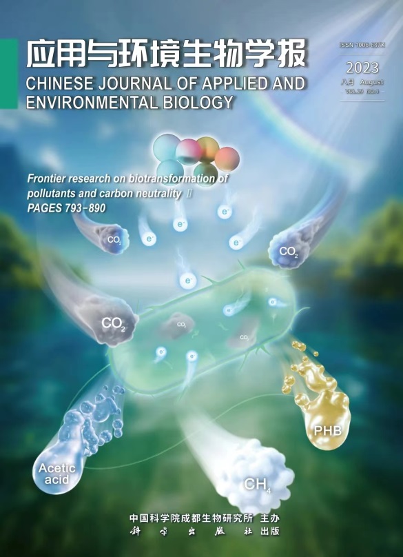 《应用与环境生物学报》获奖封面介绍:蓝绿色调寓意生机、环保。微生物固定二氧化碳(CO2)生成多种高价值物质;上方半导体纳米材料在光照下产生电子,促进微生物电子传递过程,提高CO2转化效率。以抽象放大的手法表现反应过程、灵动的形态表现各物质,具有强烈的形式美和视觉冲击力。封面基于“污染物生物转化与碳中和前沿研究”专题论文内容设计,以新兴前沿技术固定利用CO2,无CO2排放且净消耗CO2,这类负碳技术才能实现净零排放,从而达到碳中和。