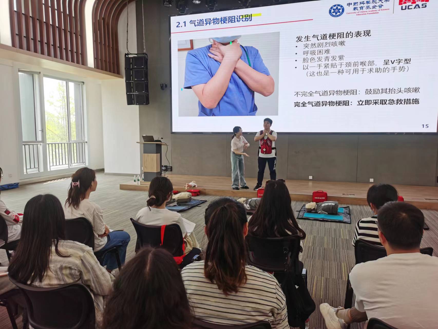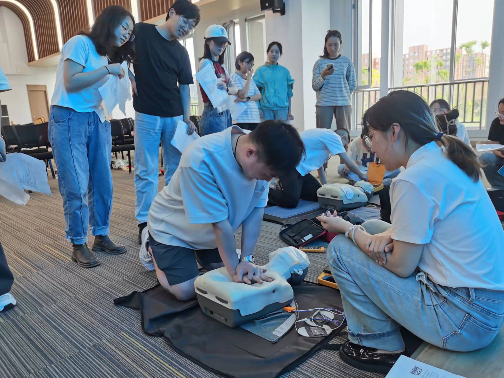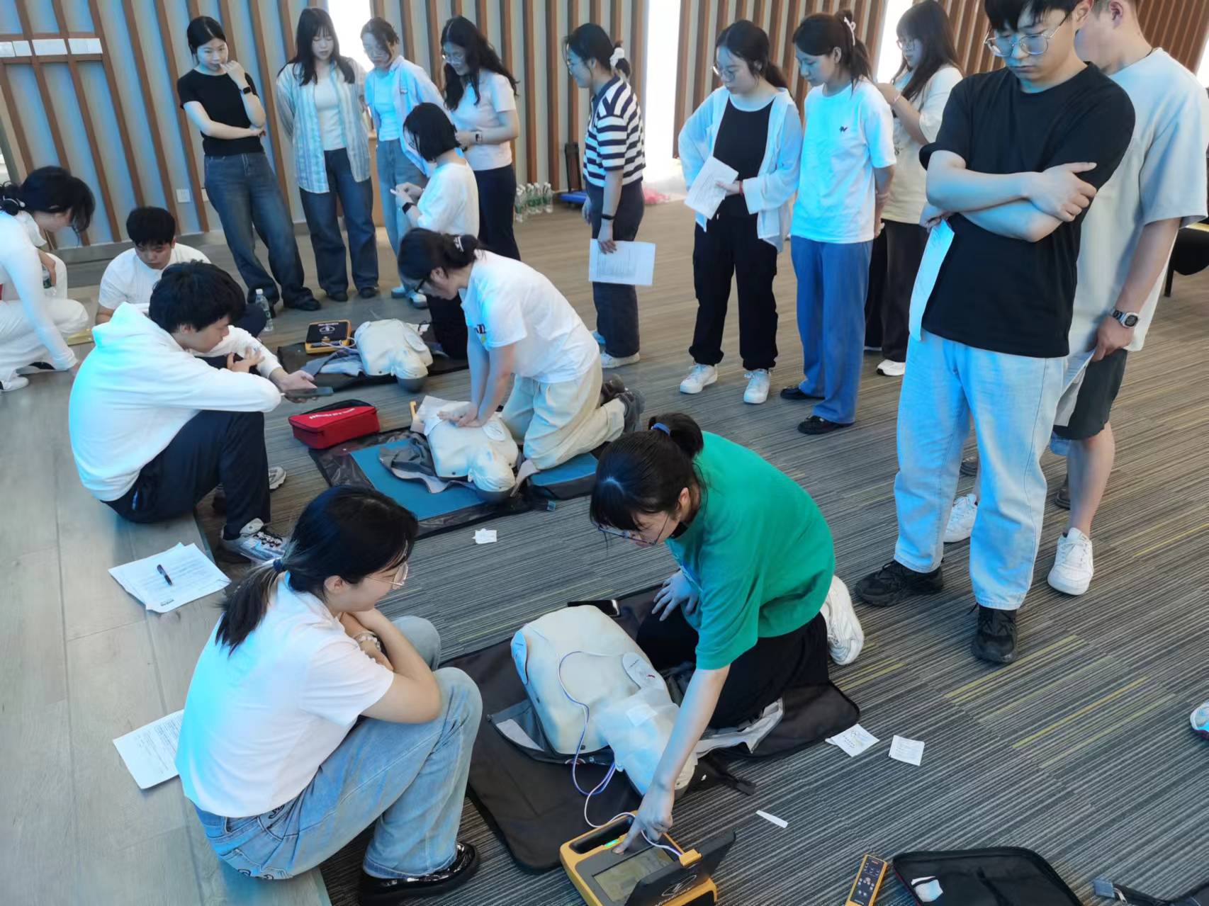 在实践操作方面,专业的急救老师为学员详细的讲解了外伤伤口包扎、气道梗阻处理、心肺复苏、自动体外除颤仪(AED)使用等急救方法,并在现场进行了细致的讲解和演示。在学员训练和考核环节,培训导师详细地讲解心肺复苏(CPR)急救实践操作程序、要领,以及AED的工作原理和使用方法等,系统全面地为参训学生提供最细致、最专业的指导,使参与者能够熟练掌握标准的急救技能。通过培训课程考核的学员还获得了国内认可的急救证书。