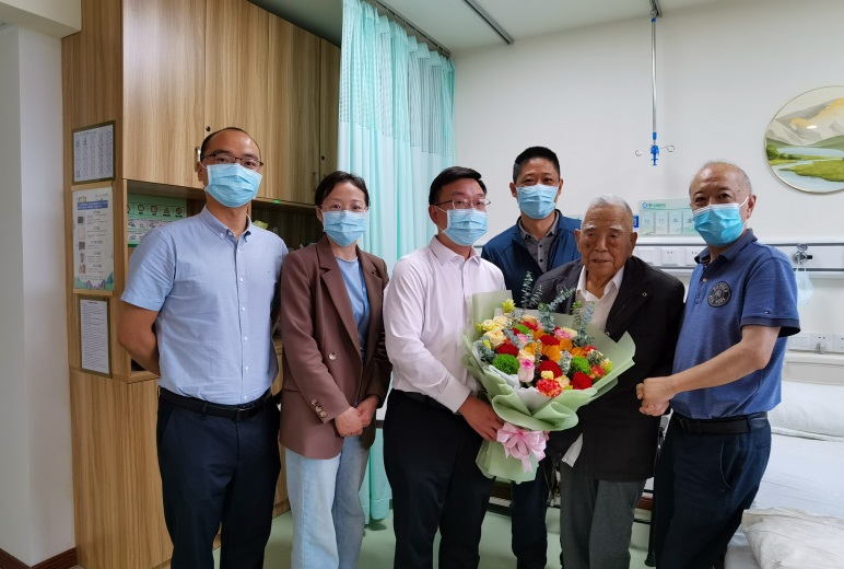 ?刘刚君详细询问了黄锐的身体和饮食情况,代表所党委、所务委员会向黄锐献上生日鲜花,对黄锐百岁寿辰表示衷心祝贺,祝愿老人家身体安康、福如东海、寿比南山。希望其安心养病,病愈出院后到研究所新园区走走看看。