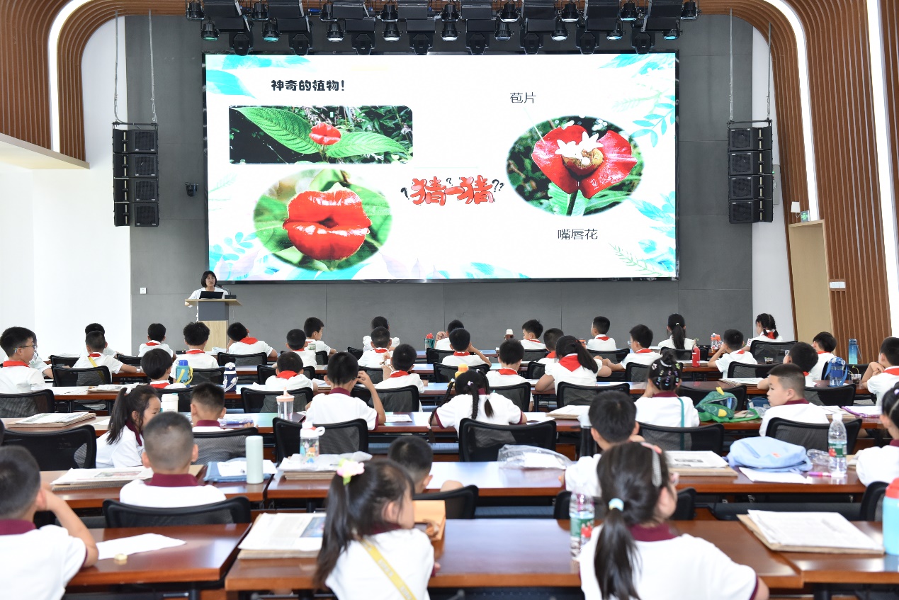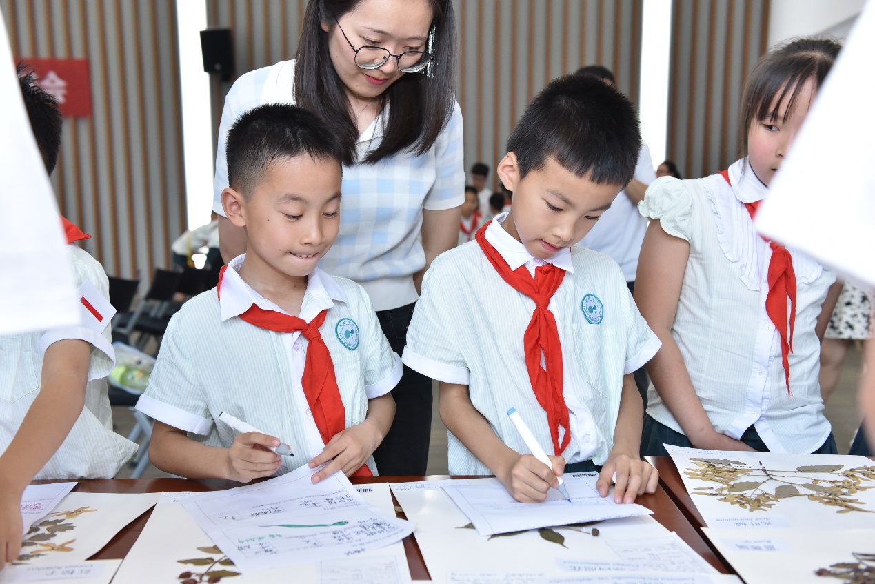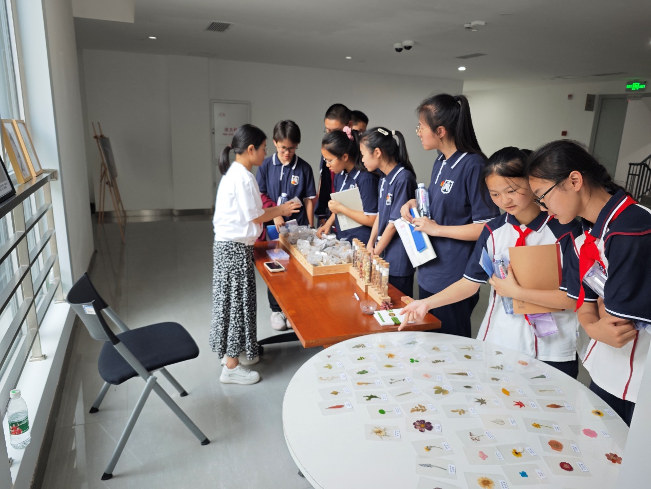 在种子的智慧展区,展示了植物叶片、花朵、种子和果实的实体标本,供学生进行观、触、闻等五感体验,还利用实体介绍了五谷知识、传统文化与植物知识等拓展,让学生们感受了植物智慧与生命的奥秘。