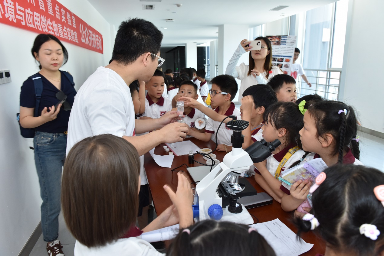 在微生物发酵相关展区,讲解员为大家详解我们身边的各类发酵产品是如何制作而来的。现场亦展示了酒、醋、酱等不同的发酵产品,通过显微观察、现场互动的方式让大家深刻感受到微生物蕴含的巨大能量。