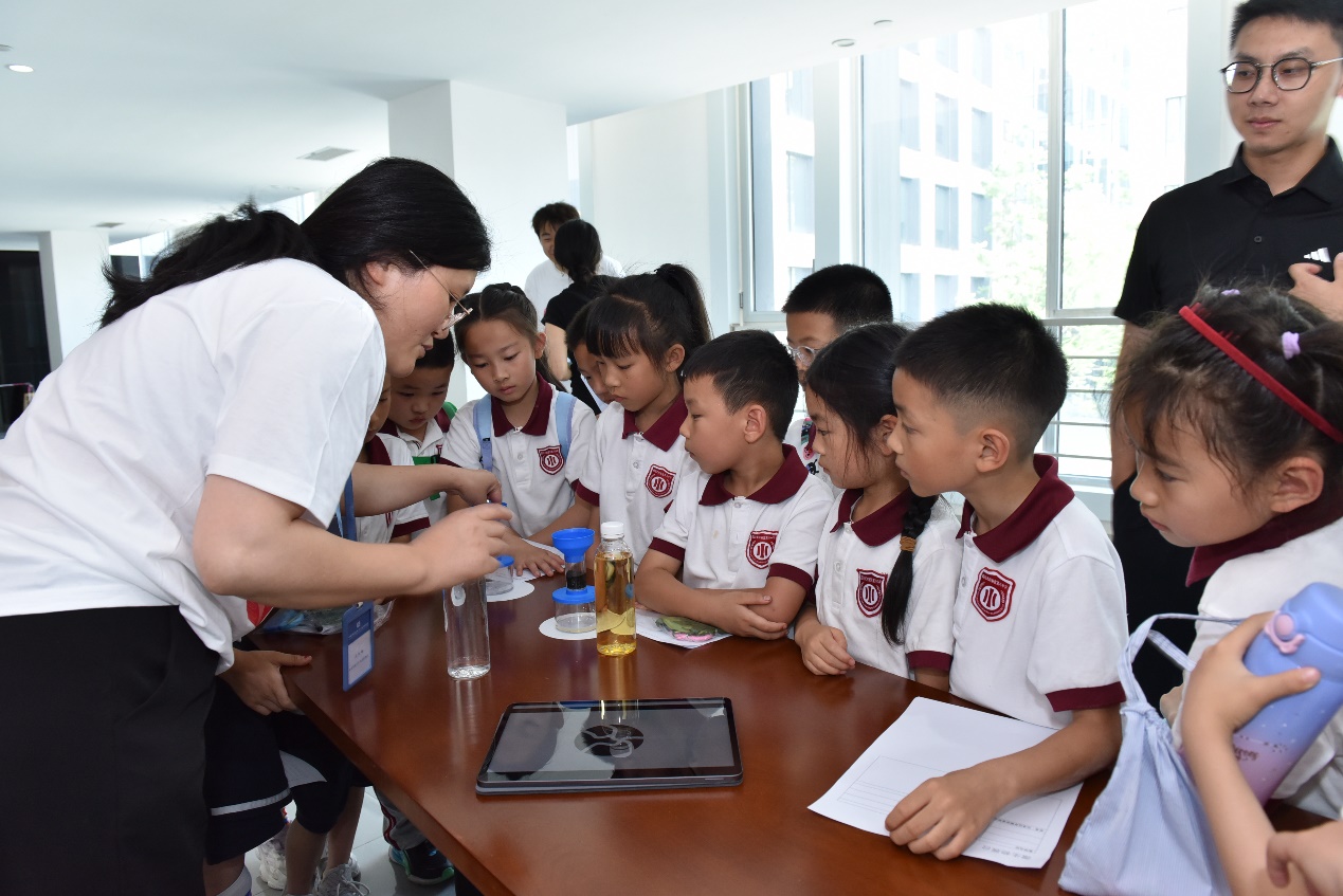 在污水净化展区,实验室的工作人员制作了现场污水处理装置,通过活性炭等物质的过滤吸附,将浑浊有颜色的液体净化成干净清澈的水。此外现场还为大家发放了水净化迷你杯作为纪念品,为现场的小同学树立了水资源的保护意识。