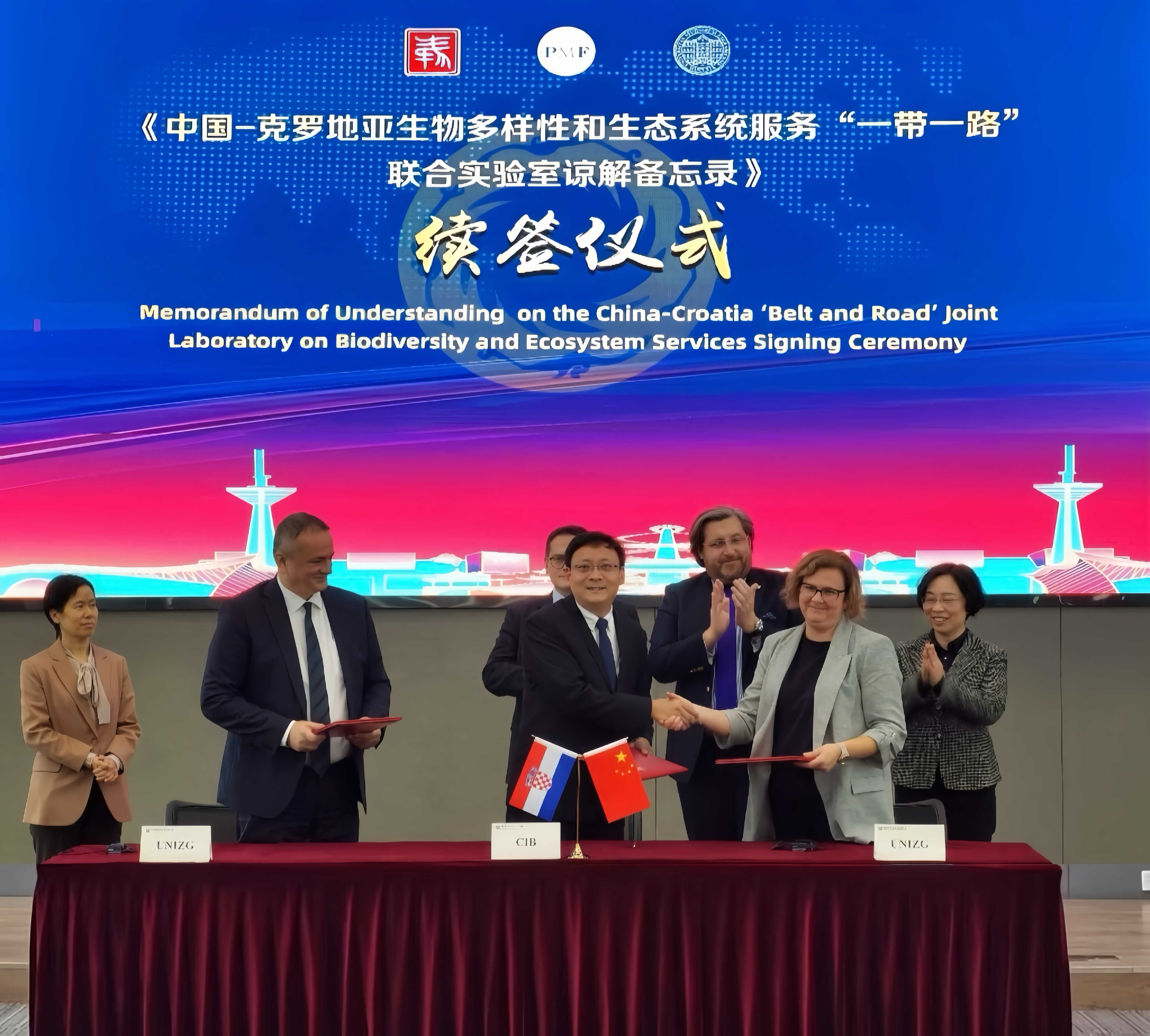 为进一步深化中国和克罗地亚两国在生态恢复领域的科研合作,11月18日,中国科学院成都生物研究所与克罗地亚萨格勒布大学续签《中国-克罗地亚生物多样性和生态系统服务“一带一路”联合实验室(筹)谅解备忘录》??寺薜匮亲せ笫笵ario Mihelin、萨格勒布大学副校长Jurica Pavi?i?、中国-克罗地亚生物多样性和生态系统服务“一带一路”联合实验室(筹)(以下简称中克实验室)克方科学家代表An?elka Plenkovi?-Moraj、中国科学院国际合作局副局长吴艳、四川省科学技术厅二级巡视员过衍、成都生物所副所长(主持工作)李家堂出席签约仪式。成都生物所所务委员王涛主持。
