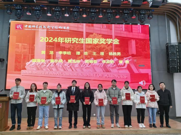 在随后的颁奖仪式上,43位获得年会奖项的同学得到表彰。在教育处处长赵爱华对本所研究生2024年获奖情况进行汇总回顾后,大会还对2024年下半年获得重要奖项的60人次进行了颁奖表彰。