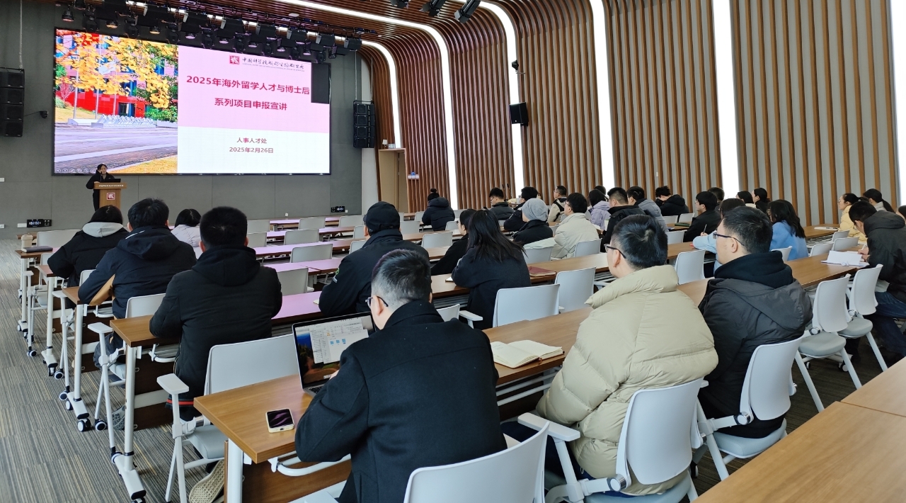 2025年2月26日下午,人事人才处在科学城园区A栋301会议室召开2025年海外留学人才与博士后系列项目申报宣讲会。会议由人事人才处副处长曹燕主持,共有青年科研人员、在站博士后等50余人参会。