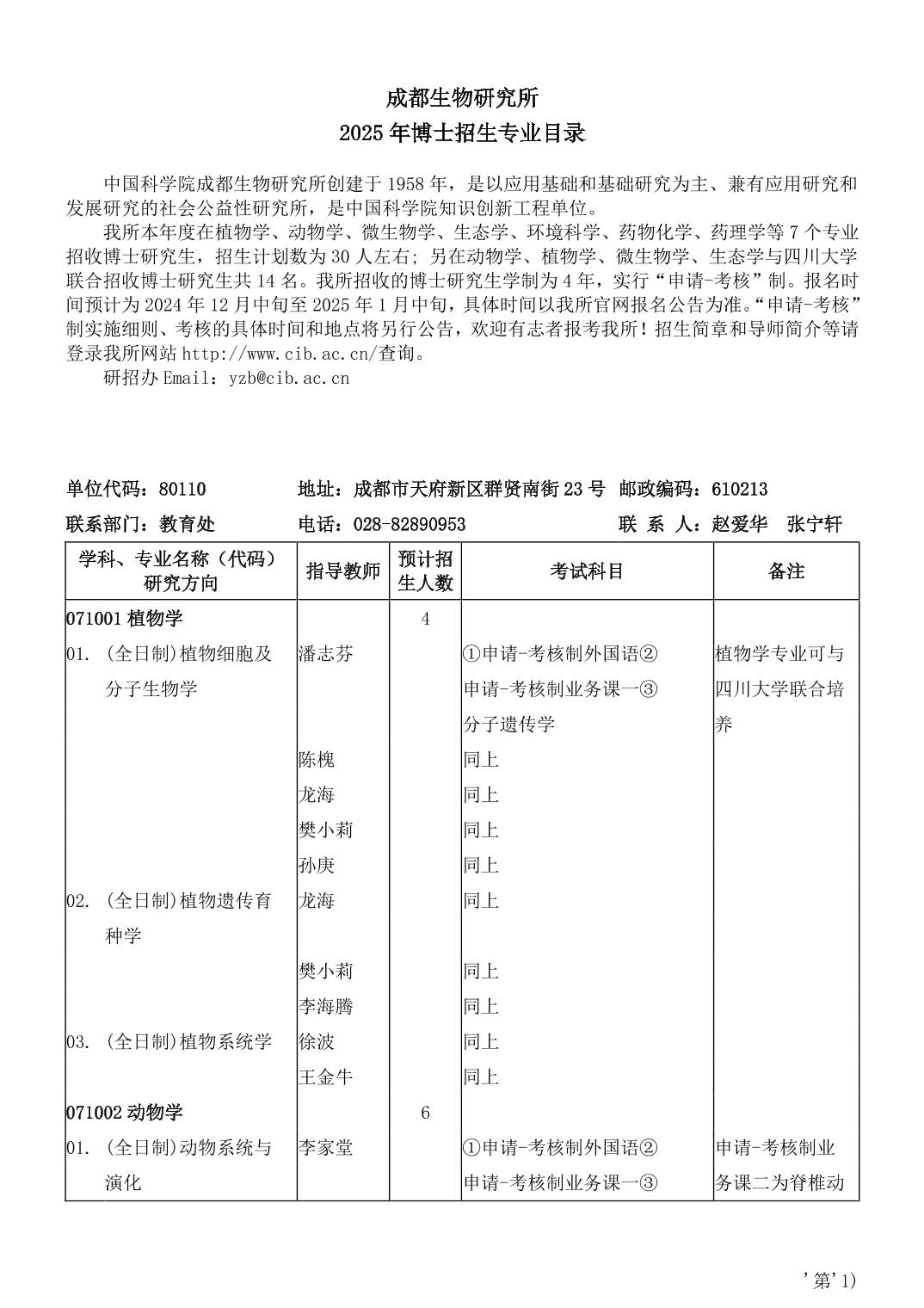 下载:成都生物研究所2025年博士招生专业目录.pdf